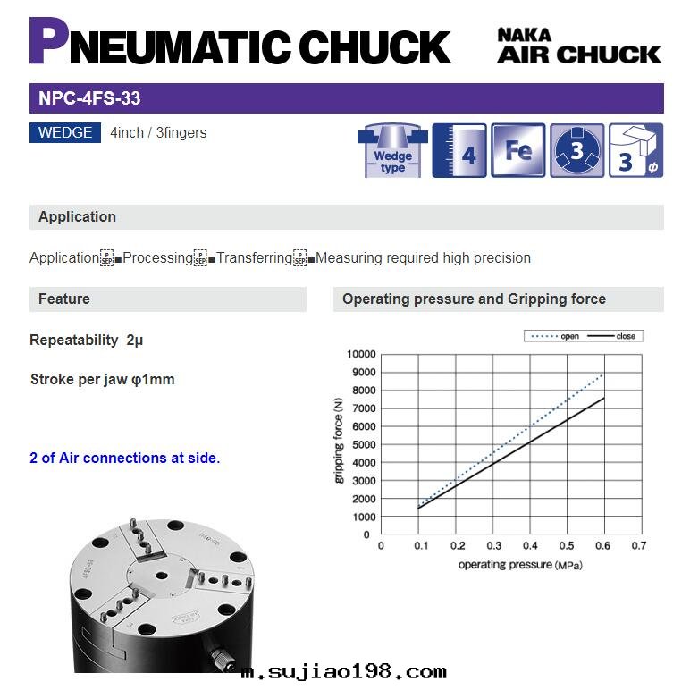 Pneumatic operating pressure (MPa) |