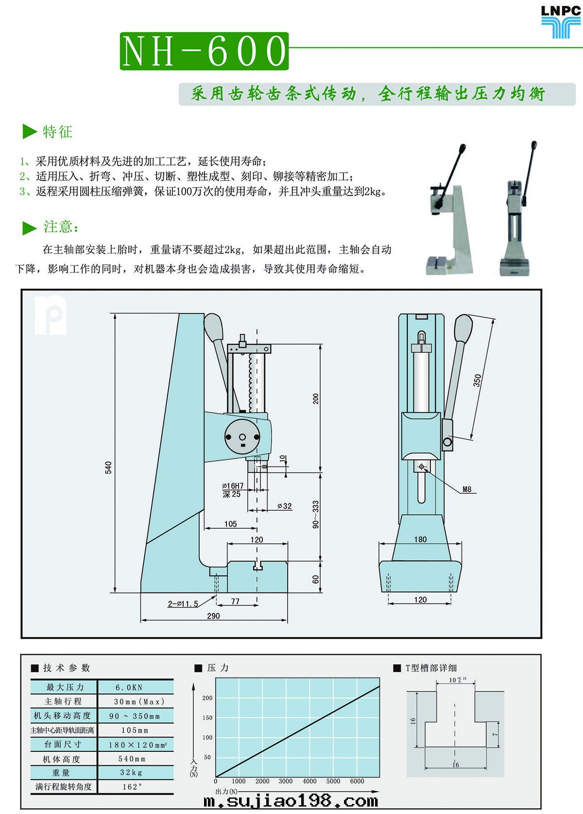 産品中(zhōng)心(xīn) 您當前(qián)的(de)位(wèi)置:首页(yè) > 産品中(zhōng)心(xīn) > 手(shǒu)動(dòng)壓力機(jī) > 齿輪齿条(tiáo)式壓力機(jī) > NH600