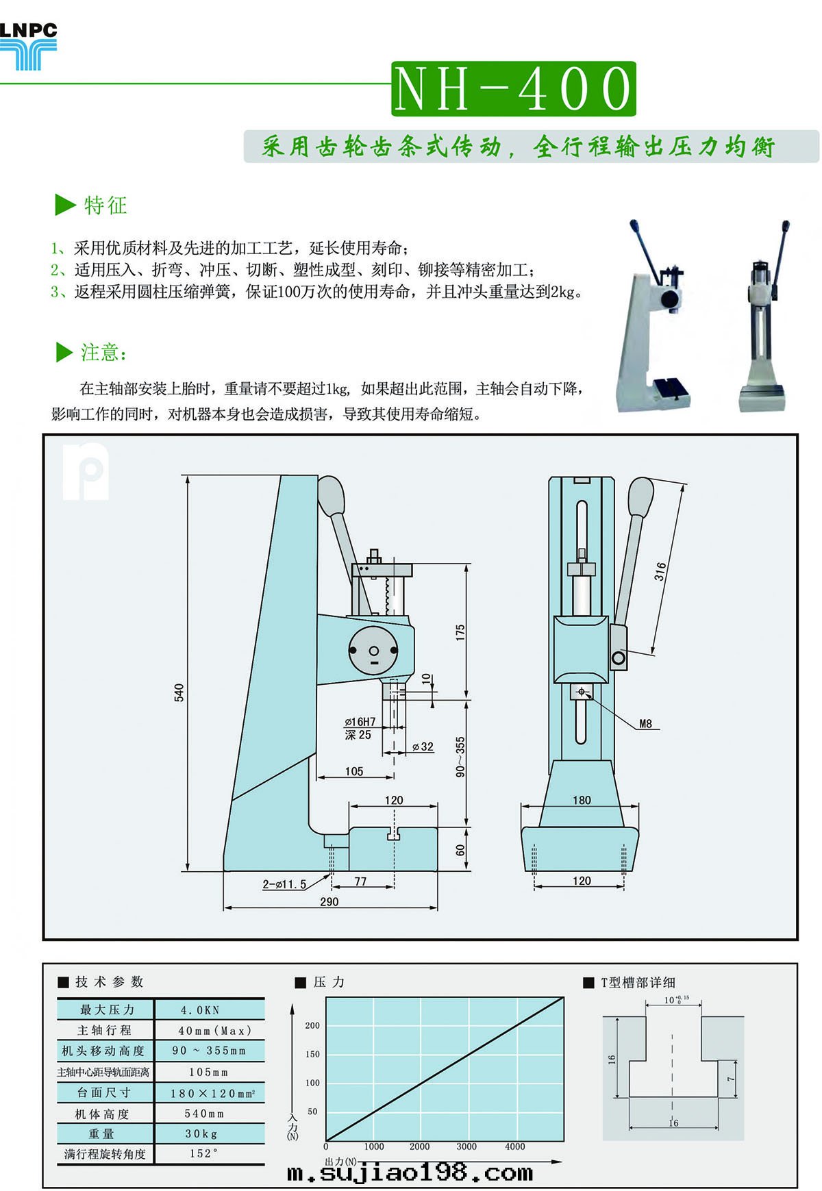 産品中(zhōng)心(xīn) 您當前(qián)的(de)位(wèi)置:首页(yè) > 産品中(zhōng)心(xīn) > 手(shǒu)動(dòng)壓力機(jī) > 齿輪齿条(tiáo)式壓力機(jī) > NH400